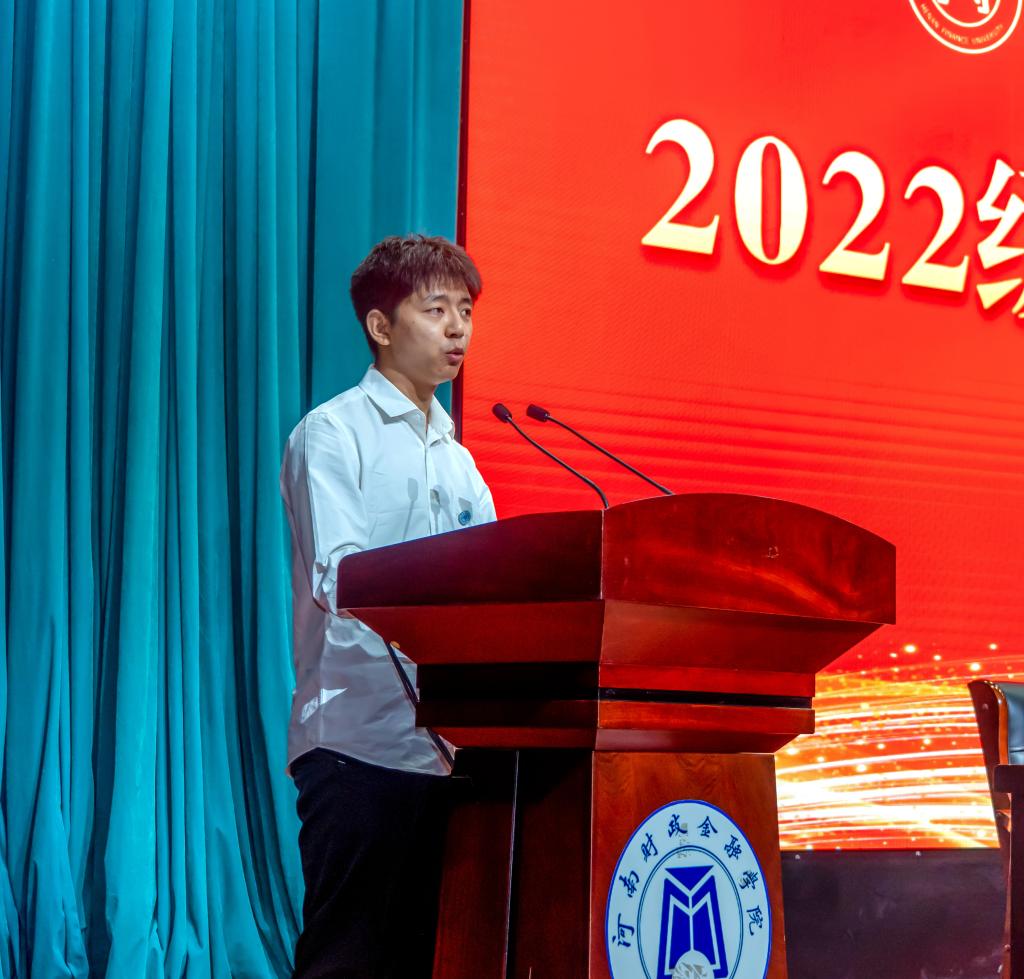 在校生代表、会计学院21级财务管理一班学生闫扬分享了自己在校的学习生活,倡议同学们珍惜求学时光,志存高远,脚踏实地,用自身的魅力去实践青春无悔的诺言。