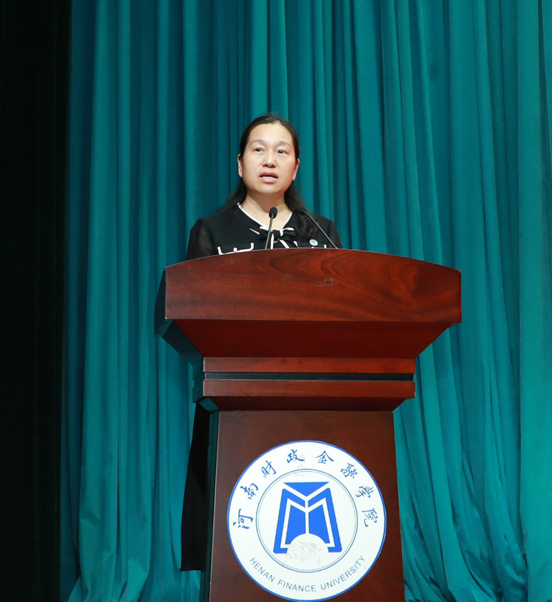 教师代表、会计学院李爱红教授发言,她表达了对同学们的殷切期盼,希望同学们学会学习、探索未知;自律生活,健康成长;培养爱好,青春飞扬;做好规划,知行合一。