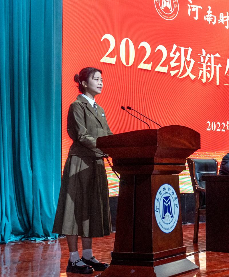 新生代表财政税务学院2022级税收学1班张恬畅同学发言
