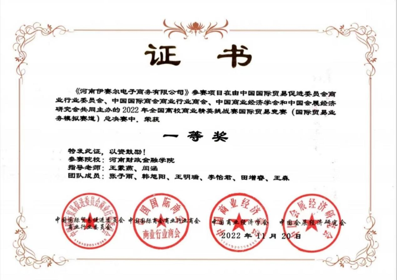 我校历来重视“以赛促学、以赛促教”和校企合作工作。本次参赛经济与贸易学院和教务处高度重视,积极组织,联系国际经济与贸易专业校外实践教学基地“河南伊赛尔电子商务有限公司”,带领学生深入走访企业、收集分析商业数据,促进了校企深度交流合作,提高了学生国际贸易相关知识应用与创新能力。本次比赛是“一体两翼”办学特色中的“财经+科技”与校企合作的融合展现,以合作企业名义参赛是促进校外实践教学基地建设的有益探索,是国贸专业推进人才培养体制改革、提升学生综合能力的重要举措,也是开展《国际贸易实务》《进出口会展实务》等课程教学改革、推动课堂教学水平提升、课赛结合的应用型人才培养模式创新实践。本次获奖充分展现了我校学生扎实的专业功底、良好的国际贸易业务能力、英语谈判能力、科技应用能力、团队沟通协作实践能力和坚持不懈的精神,推动高素质应用型人才的培养,达到我校“以赛促学、以赛促教”的目的,有效提升了实践教学的质量和水平。(教务处、经济与贸易学院 卞玲、王蒙燕/文 孙文杰、徐冉/审核)