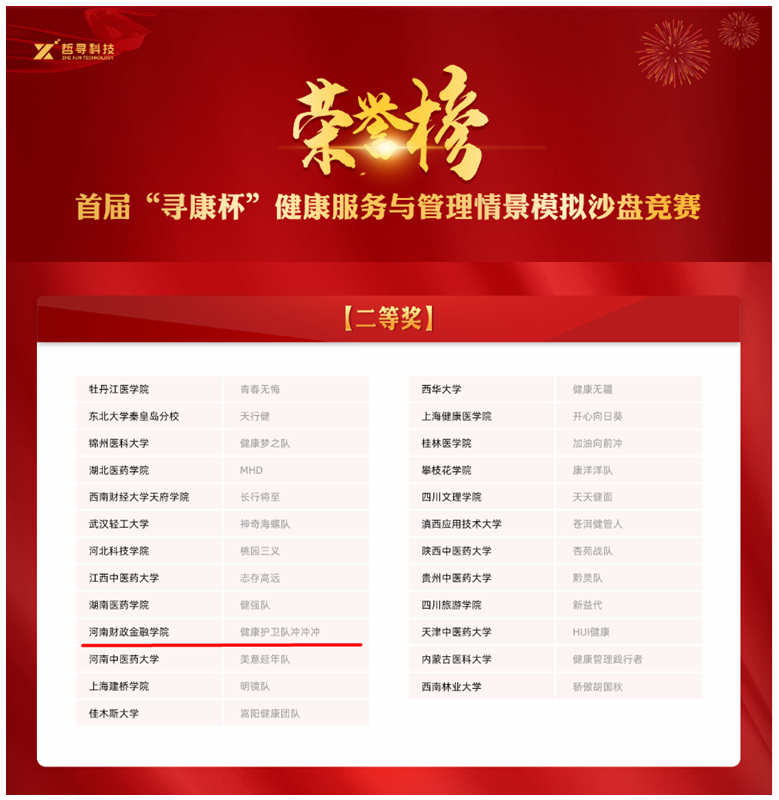 11月11日-27日,首届“寻康杯”全国大学生健康管理情景模拟沙盘竞赛落下帷幕,我校由体育与健康管理学院学生张杏芬、李梦佳、韩永欣组成的“健康护卫队”代表队喜获二等奖。