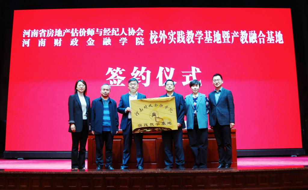 3月7日上午,我校与河南省房地产估价师与经纪人协会(以下简称协会)在黄河迎宾馆迎宾会堂举行校外实践教学基地暨产教融合基地签约仪式,我校副校长王孝俊和河南省房地产估价师与经纪人协会会长丁金礼出席签约仪式,参加2022年度河南省房地产估价经纪行业总结大会的各地市协会分会负责人、200余名房地产估价经纪机构会员代表、我校工程经济学院负责同志和教师代表参加了签约仪式。