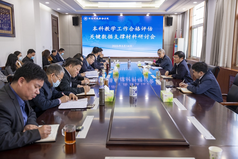 为高质量完成合格评估关键数据支撑材料上报工作,3月14日上午,学校在龙子湖校区309会议室召开合格评估关键数据支撑材料研讨会。校长李学志、副校长王忠勇出席会议,相关部门负责人及数据填报人员、评建工作组成员参加会议。