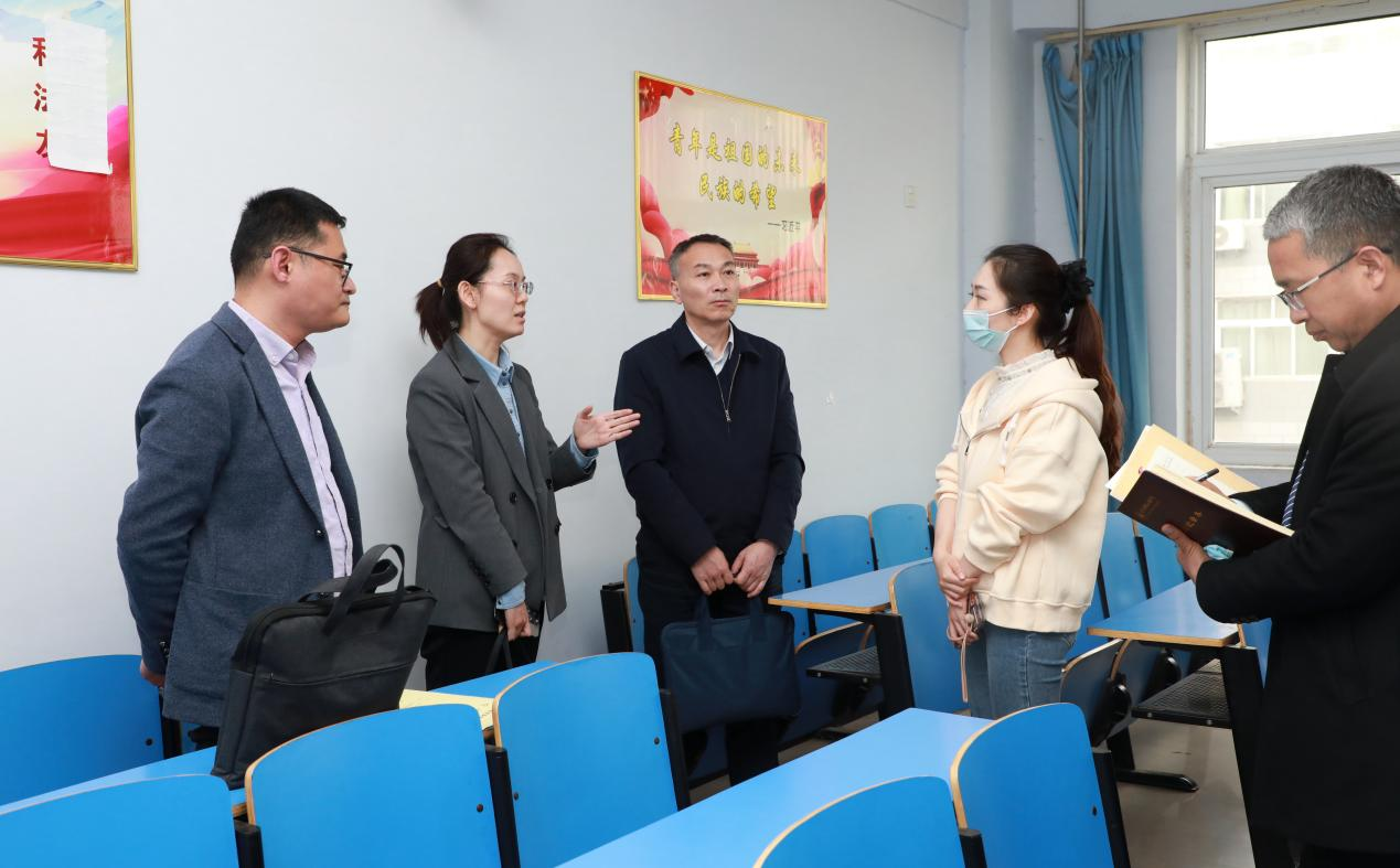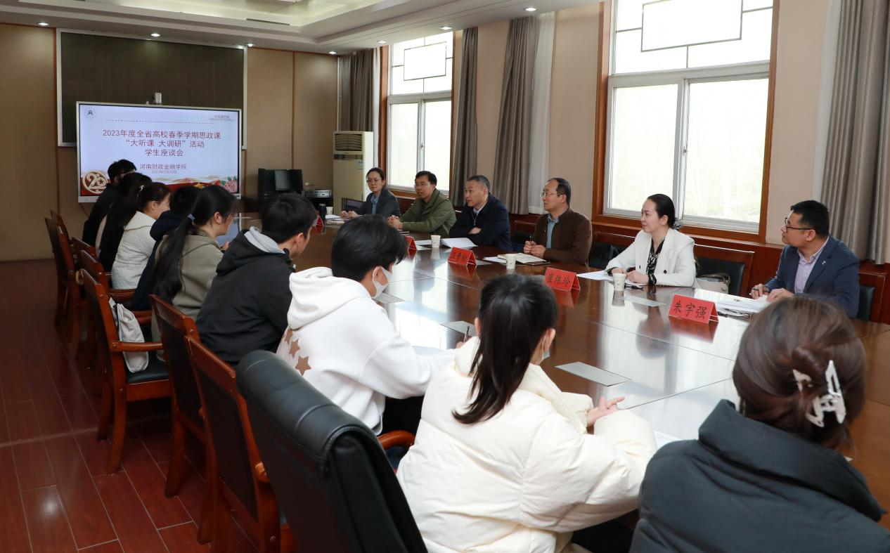 为深入学习贯彻党的二十大精神和习近平总书记关于思政课系列重要讲话精神,落实《关于开展2023年度全省高校春季学期思政课“大听课”“大调研”活动的通知》(教思政函〔2023〕86号)精神,3月22日,以洛阳理工学院党委副书记曾涛为组长,郑州航空工业管理学院马克思主义学院院长汪青松、洛阳师范学院马克思主义学院院长吴胜锋、平顶山工业职业技术学院马克思主义学院副院长崔伟玲、河南农业大学马克思主义学院刘宁静博士和洛阳理工学院马克思主义学院朱宇强博士组成的思政课“大听课”“大调研”活动第一调研组莅临我校指导思政课建设工作。我校副校长王忠勇、党委宣传部、教务处负责同志,马克思主义学院领导班子及师生代表20余人参加了调研活动。