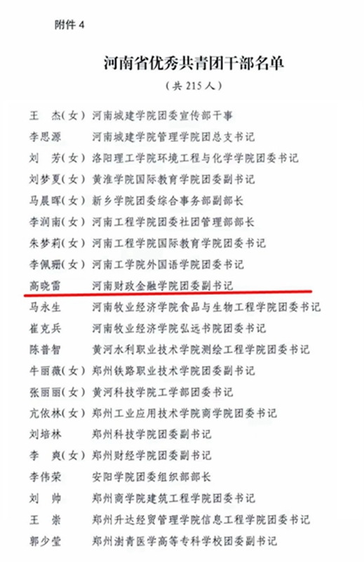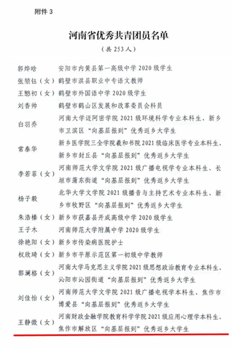 近日,团省委、省青年联合会发文表彰了2022年度在各领域涌现出的杰出青年先进集体和个人。我校工商管理学院团总支和音乐学院团总支荣获“河南省五四红旗团支部”称号,我校团干部高晓雷荣获“河南省优秀共青团干部”荣誉称号,外国语学院2020级商务英语本科生胡若凡荣获“河南省优秀共青团员”荣誉称号,教育科学学院2021级应用心理学本科生王静微作为焦作市解放区“向基层报到”优秀大学生,荣获“河南省优秀共青团员”荣誉称号。