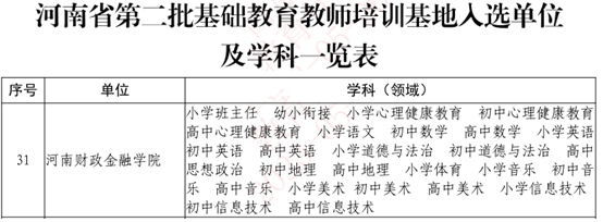 近日,省教育厅公布了河南省第二批基础教育教师培训基地,我校申报的班主任、英语、道德与法治、信息技术等26个学科(领域)成功入选。加上首批入选的中小学校长、幼儿园园长、师德等13个学科(领域),我校作为河南省基础教育教师培训基地,培训资质已基本覆盖基础教育全学段、全学科(领域)。