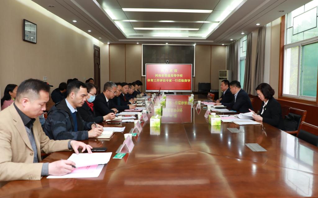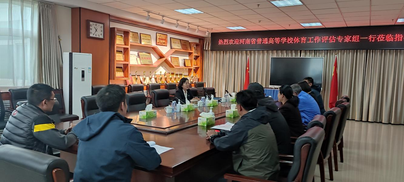 4月28日上午,以郑州大学体育学院校长张大超为组长,河南科技大学体育学院院长武笑玲、濮阳职业技术学院体育健康学院院长张同怀为成员组成的河南省教育厅普通高等学校体育工作现场评价专家组一行三人莅临我校进行现场评价并指导工作。校党委副书记、工会主席王勇军出席汇报会并致欢迎辞。教务处负责同志主持汇报会。党委学工部、校团委、人事处、教务处、发展规划处、财务处、后勤管理服务中心、体育与健康管理学院等部门负责人及体育与健康管理学院教师代表参加汇报会。校长李学志在汇报会前会见了专家组一行。