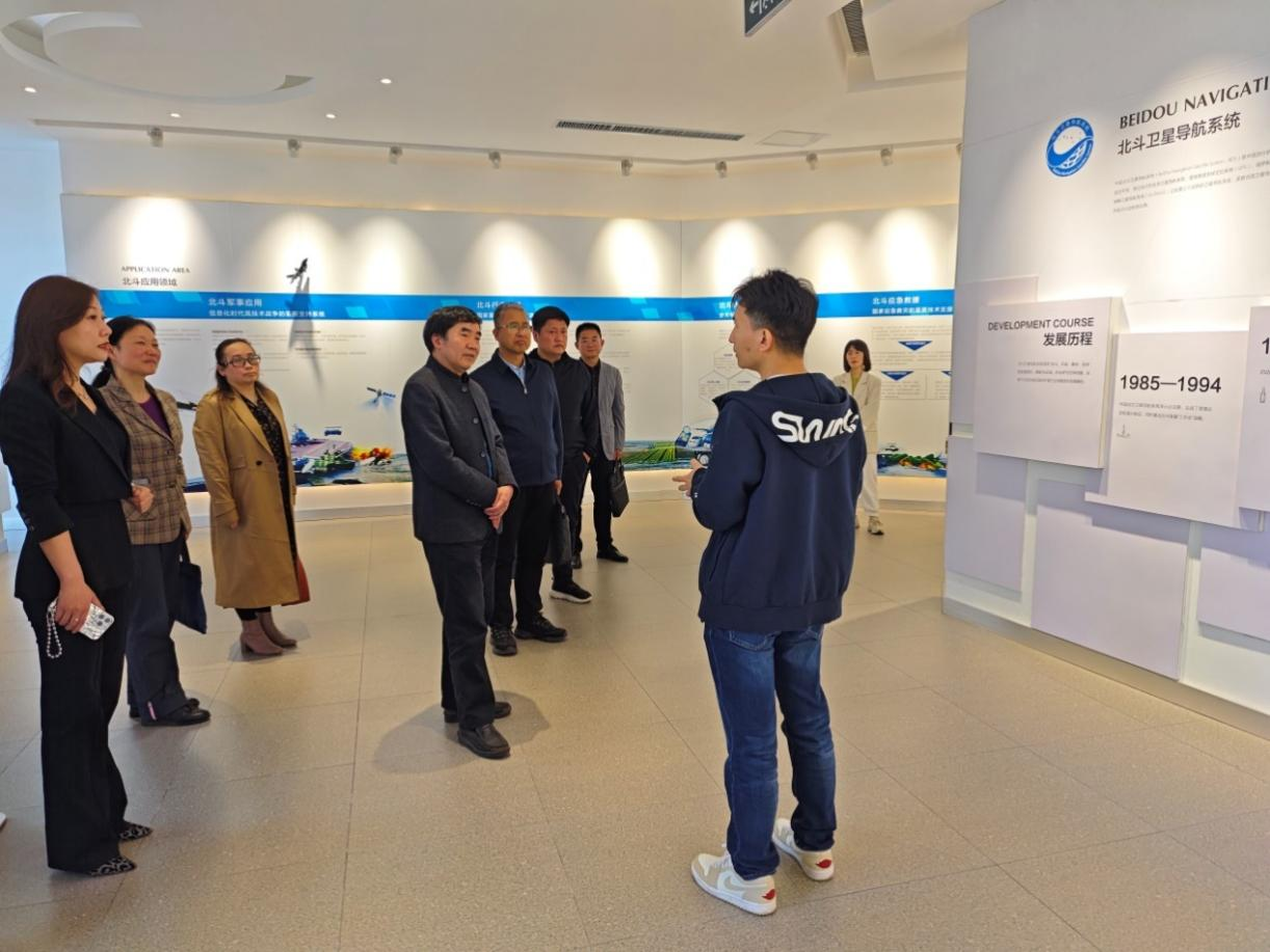 高新区北斗产业园讲解员向王忠勇一行介绍了产业园的基本情况以及中国北斗导航系统在精密测绘、轨道交通、物联网、智慧物流、智慧农业、智慧交通等领域的北斗融合创新应用。
