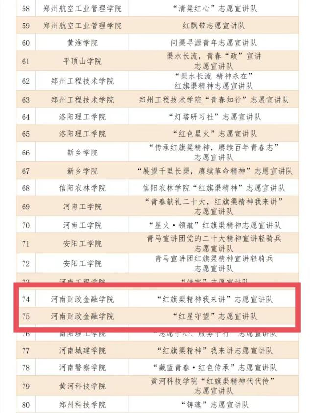 近日,从省委宣传部、团省委传来好消息,我校“红旗渠精神我来讲”和“红星守望”两支志愿宣讲队成功入选河南省大学生“红旗渠精神代代传”大学生志愿宣讲队。