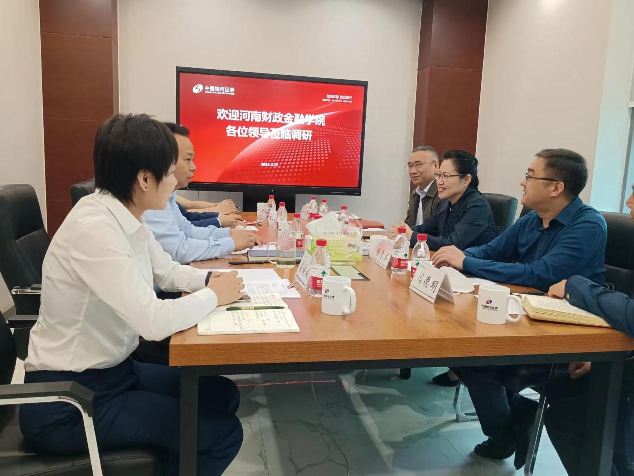 为深入了解统计与数学学院校外实践教学基地建设情况,扎实推进学院本科教学合格评估评建工作,5月25日上午,副校长颜敏带领统计与数学学院负责同志,赴统计与数学学院校外实践教学基地——中国银河证券股份有限公司郑州智慧岛营业部进行了走访调研。