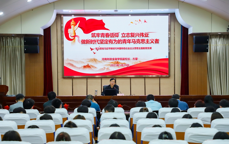 为扎实推进学习贯彻习近平新时代中国特色社会主义思想主题教育,加强党员教育培训工作,5月29日,副校长方蒙为学校2023年新党员培训班讲授专题党课。分管联系单位负责同志与新党员培训班学员和其他学生党员参加学习。
