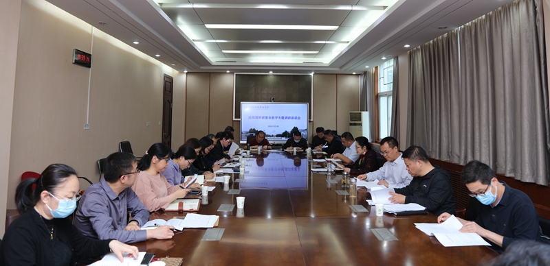 为深入开展学习贯彻习近平新时代中国特色社会主义思想主题教育,总结三年来学校应用型科研服务教学工作情况,推进本科教学迎评促建,5月29日下午,副校长颜敏主持召开学校应用型科研服务教学专题调研座谈会。座谈会在行政楼227召开,各二级学院院长及人事处、科研处、发展规划处、校地校企合作处、图书馆等部门负责人参加座谈会。