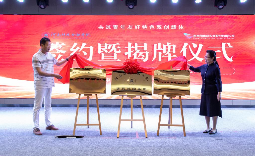 副校长颜敏和河南创意岛实业股份有限公司总经理程勇共同揭牌