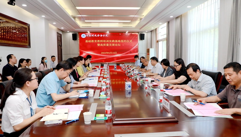 6月14日上午,我校举行基础教育教师培训实践基地签约仪式暨高质量发展论坛。副校长王孝俊、河南省教育厅教师教育处处长李松原、郑州市第四初级中学、郑州市第四十七中学、郑州市郑东新区美秀小学、郑州市科学技术馆、河南省实验学校郑东小学、郑州市郑东新区心怡路小学、中国银河证券股份有限公司河南分公司等单位负责人出席签约仪式和高质量发展论坛。我校部分二级学院负责同志及继续教育学院全体人员参加签约仪式和高质量发展论坛。