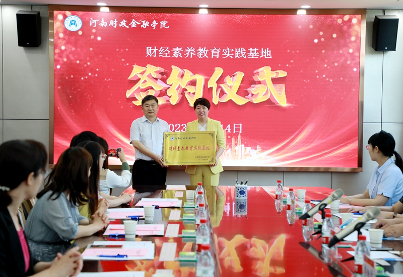 在与会人员的共同见证下,王孝俊分别为基础教育教师培训实践基地代表郑州市科学技术馆和财经素养教育实践基地代表郑州市郑东新区美秀小学授牌。