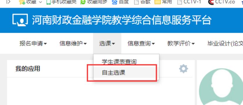 1.登录新教务系统,在“选课”菜单下点击“自主选课”,见下图。