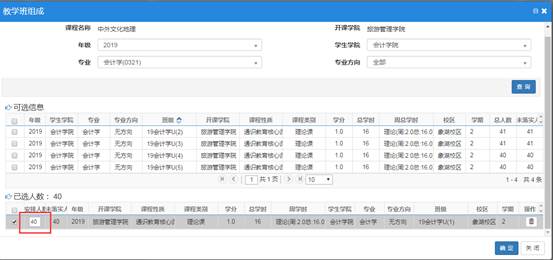 需要学生选课的专业选修课程在安排教学任务时,合班个数得多加考虑。因为先排课后选课(所有学分版本科院校皆如此),选课人数达不到要求的课程被砍掉,会出现老师排好课程不开课的情况。上学期先排课,再让学生选完课,最后安排了调课工作,在系统上的调课工序非常麻烦还容易出错;本学期先排课,让老师调完课后,再安排学生选课,选课人数达不到要求的课程被砍掉,选完课不再给与调课机会。