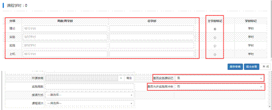 (1)如果该门课程为理论课(多数学时在理论分项一行),则主学时标记应点击“理论”单选框。