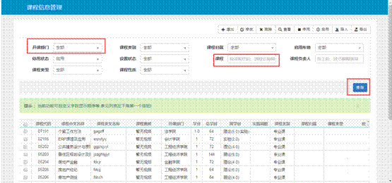 (三)教务处教务科在教务管理系统中审批,申请的课程若没有课程重复、内容有误的情况则分配课程代码,有问题的退回申请。查询课程代码的方式如下图。