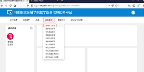 1.2020级转专业学生登录教务管理系统,点击“信息查询-查询个人信息”。