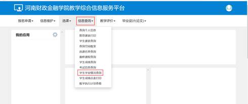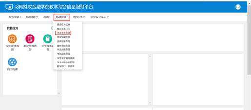 1.点击“信息查询-学生课表查询”,进入“学生课表查询”页面。