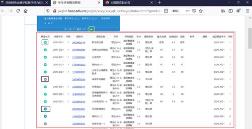 ①黑色框中“绿色带对号的圆圈”代表该课程学分已满,表示该课程已修并取得成绩。