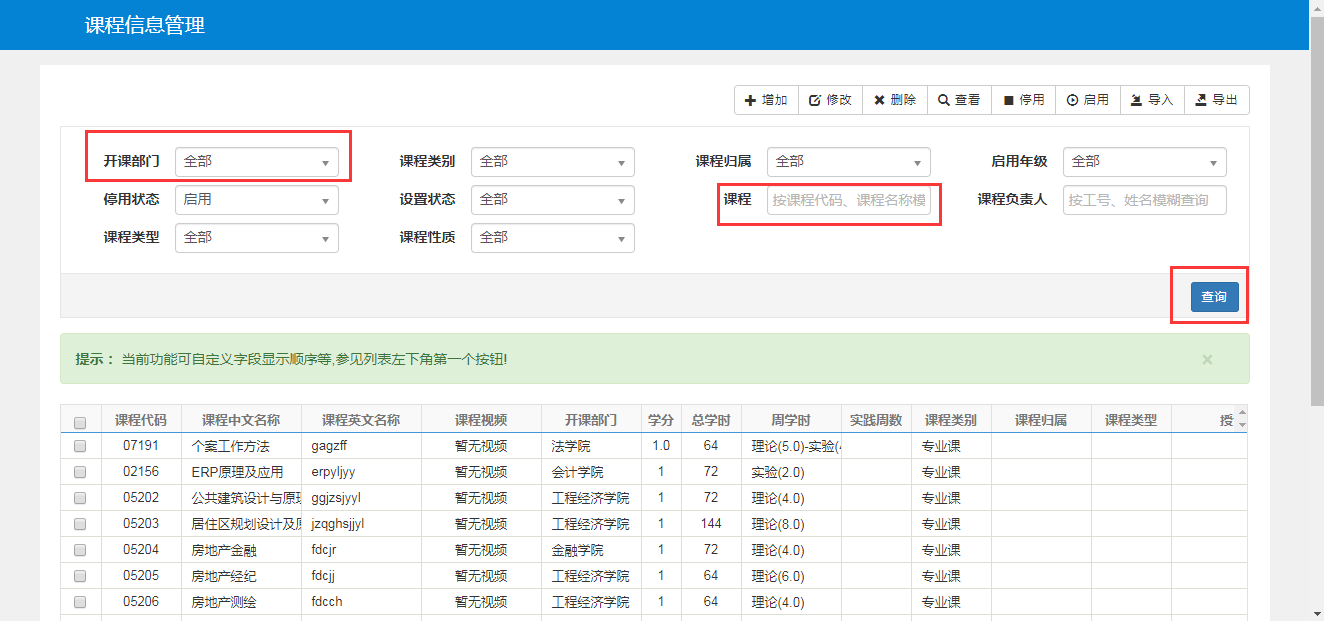 3.课程中文名称、课程英文名称、开课部门、学分、课程类别为必填项。