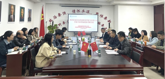 河北科技师范学院马克思主义学院副院长王炳义对学院的接待表示感谢。他介绍了河北科技师范学院马院的基本情况,重点介绍了“旗帜讲坛、思政先锋学习团和科师讲习团”“思政课教学质量提升年”“思政课实践教学中心建设”“课程思政教研指导中心建设”等内容和具体做法、经验。他表示,希望在党建工作、AI技术赋能思政课、思政课特色建设以及名师工作室建设上多多借鉴和学习。